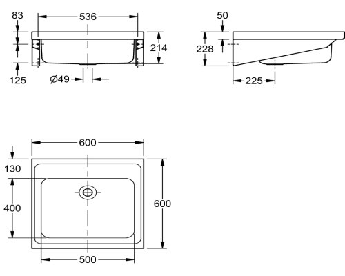 NOTE: It is not possible to fit an overflow. The sink top can either be mounted on wall brackets or front leg supports.